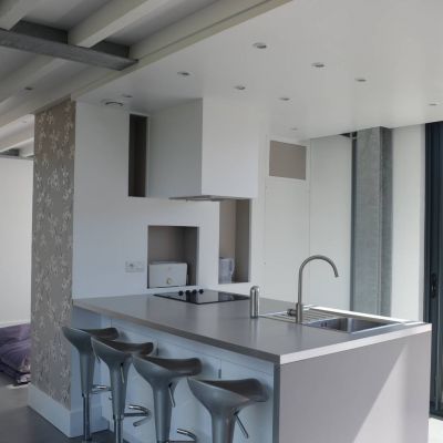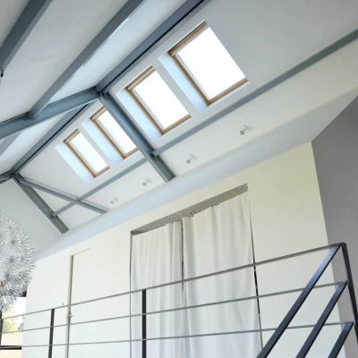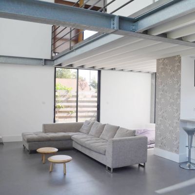 Notre travail d’architectes a donc été d’intégrer 2 données à priori contradictoires : avoir une vue dégagée vers le paysage au nord et bénéficier d’un apport de lumière du sud.